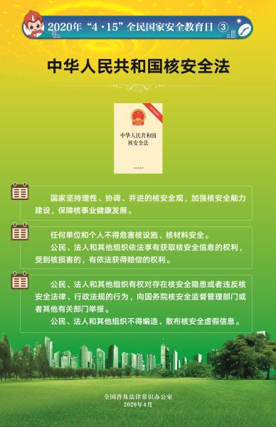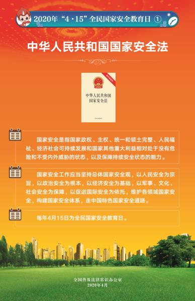 “4月15日”是全民国家安全教育日。家是最小国,国是千万家。国家安全教育日每年只有一天,但国家安全问题却每时每刻都值得高度重视。维护国家安全、荣誉和利益是实现国家富强、民族振兴的重要保证;是公民爱国主义精神的具体体现;是每个公民义不容辞的职责。