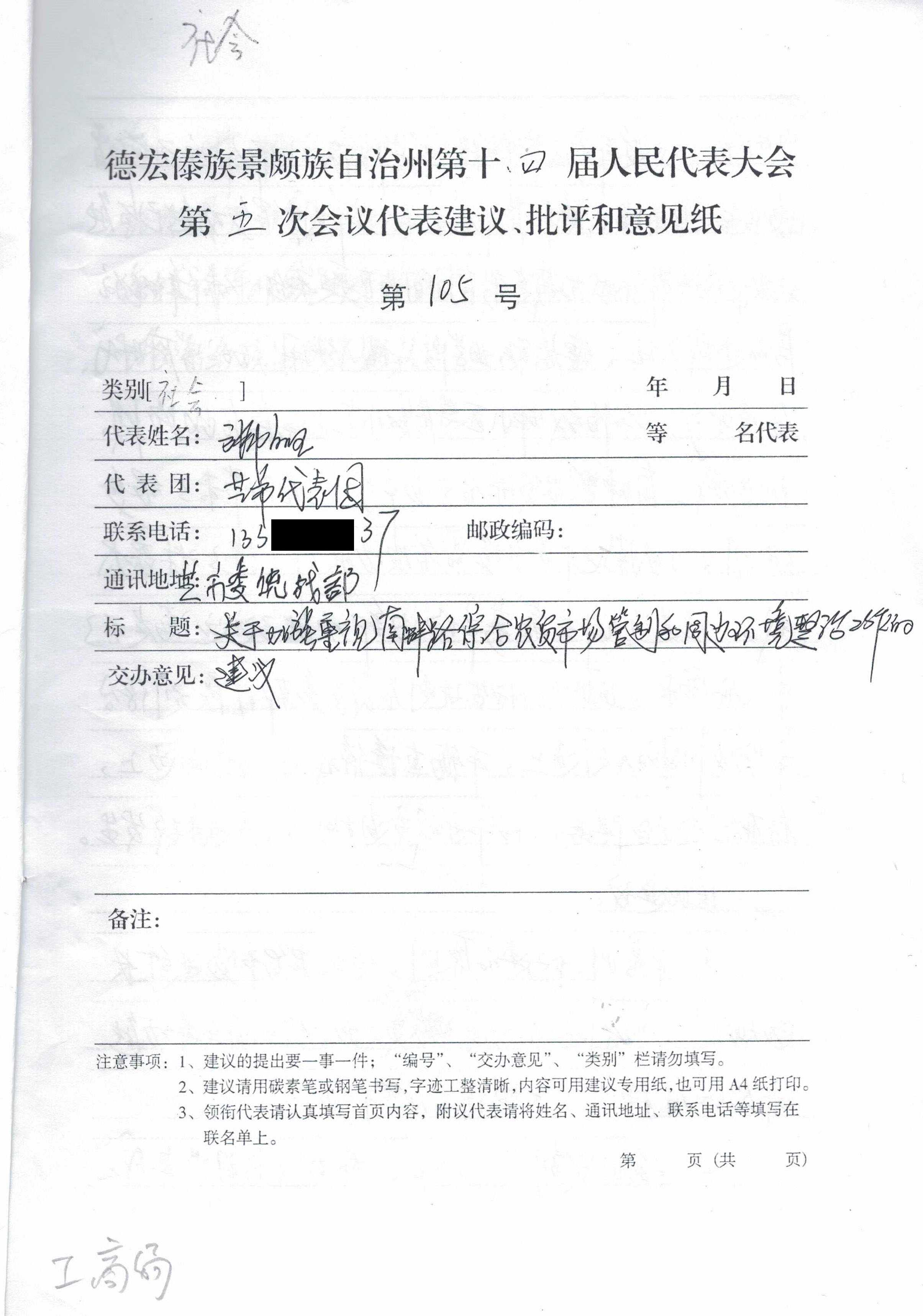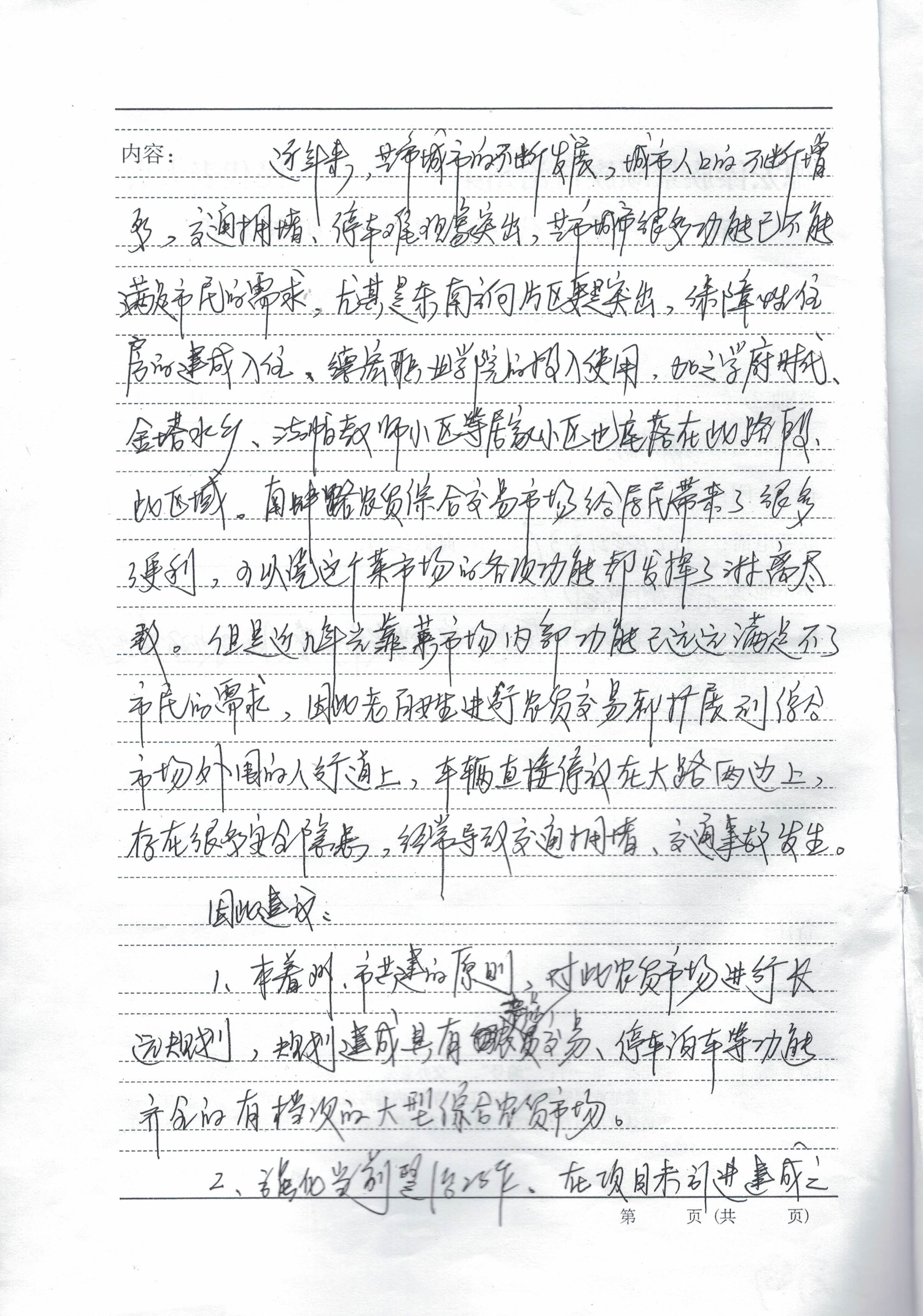 人大建议(2017)105号—关于加强重视南蚌路综合农贸市场管制和周边环境整治工作的建议