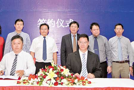 柳五三和尚朝贤分别代表瑞丽试验区管委和大通公司签署协议。