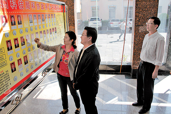 何汝利查看州科技局政务公开栏