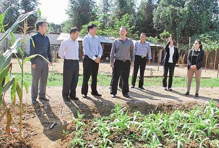 遮相公路管理所位于芒市轩岗乡,承担着芒那线45公里二级公路的养护管理工作,是芒市通往梁河、盈江的重要经济干线,交通流量大,养护任务重。在德宏总段党委书记高尔朴、总段长杨定忠的陪同下,张长生步入遮相所,与一线养路职工一一握手,嘘寒问暖。看到所里规划布局简单实用,养路文化氛围浓厚,张长生露出了欣喜的笑容。他一边听取介绍,一边走进农副业生产区,看到蔬菜瓜果长势喜人,猪鸡鸭鹅成群结队,张长生说:“养护生产任务这么重,农副业生产还搞得这么好,大家用心创造美好生活,辛苦啦!”