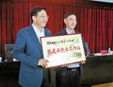 王明山向张建云院士授“德宏州院士工作站”牌