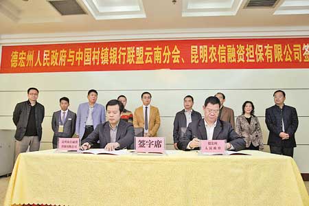 州委常委、常务副州长、瑞丽试验区管委副主任柳五三出席签约仪式并讲话。他指出,金融是我们经济发展的动力,是我州跨越发展的新生力量。我州金融办成立以来,不断聚集金融的力量,不断容纳金融机构,为德宏经济注入新的活力。今天,我们又迎来中国村镇银行联盟云南分会、昆明农信融资担保有限公司两家金融机构,这将为德宏的发展注入新鲜的“血液”。他希望金融办认真做好服务工作,各县市认真做好配合工作,努力实现双方的合作共赢,助推德宏发展迈出更加坚实的步伐。