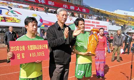 此次“体育彩票杯”2013年云南·东盟国际足球公开赛由省体育局和州政府主办,由省体育彩票管理中心、省足球运动管理中心、省足球协会、州文化体育新闻出版局共同承办。经过第一阶段4天和第二阶段5天紧张、激烈的比赛,圆满完成了所有比赛。丽江古城保护管理局代表队勇夺本次比赛冠军,老挝金三角经济特区代表队获第二名,缅甸喊大瓦帝联合代表队夺得第三名,泰国清迈代表队获第四名;德宏供电局代表队获体育道德风尚奖;王川获“优秀裁判员”称号。
