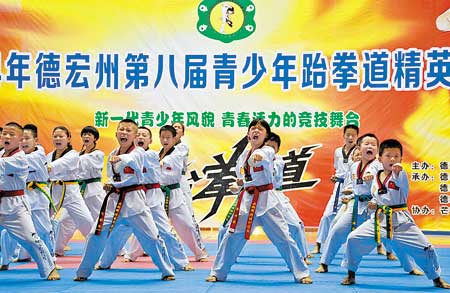 德宏州第八届跆拳道精英邀请赛于8月15日至17日在德宏州体育运动中心体育馆举行,来自全州各县市和龙陵的11支代表队共260余名跆拳道精英汇聚芒市以武会友。