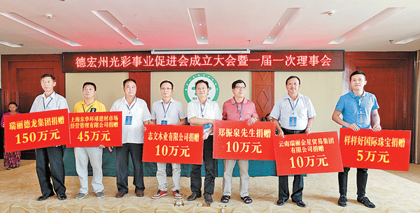 德宏州光彩事业促进会成立大会暨一届一次理事会,8月22日在芒市召开。光促会的成立,将更加规范有序地组织、引导我州广大非公有制经济人士和民营企业参与到光彩事业中来,对不断发扬光彩精神,动员广大非公经济人士自觉承担社会责任、积极投身光彩事业,加快推进桥头堡黄金口岸和瑞丽国家重点开发开放试验区建设起到积极推动作用。