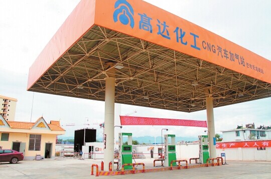 德宏高达化工CNG汽车加气站芒市天龙街站是德宏傣族景颇族自治州第一个汽车加气站,但目前所用气源是从贵州等地运来的液化天然气。