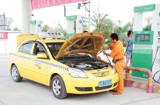 17日中午,出租车司机谢师傅把车缓缓驶进了德宏高达化工CNG(压缩天然气)汽车加气站芒市天龙街站,停在了加气装置旁。开引擎盖、加气、气瓶检测,不到三分钟,加气站员工很快完成了各项操作,谢师傅又重新上路了。谢师傅告诉记者:“我的出租车油改气已经有一年多了,每公里能省1毛多。”