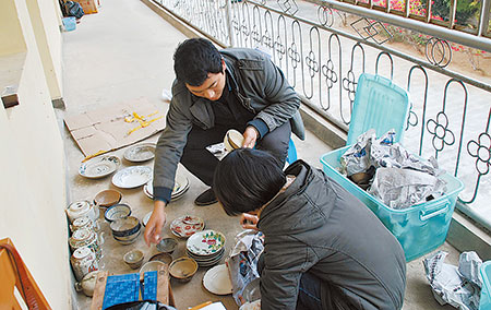 工作人员将捐赠文物登记入库