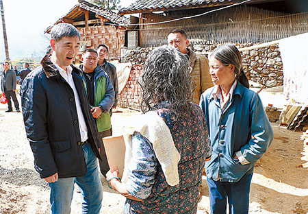 在走访慰问勐弄乡和卡场镇受灾群众时,每到一处,王明山都关切地询问受灾群众的家庭、经济来源及看病就医等情况,认真倾听他们的心声,并给他们送上慰问金和节日的祝福。