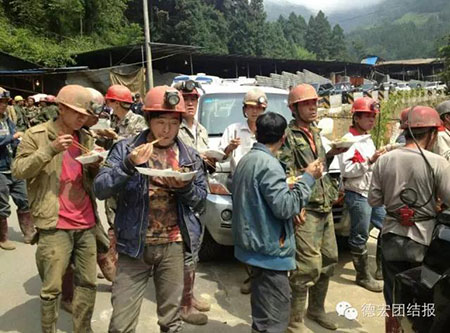 26日中午11时许,来自大理的何姓大哥告诉记者,他们是云锡梁河救援队的,平时与被困人员素昧平生,但是大家都是同行,所以一心想着把他们尽快救出来。他们已经在矿坑里作业了20多小时,一干就是两个小时,然后轮流就地坐着休息30分钟,连吃饭都是在矿坑里。