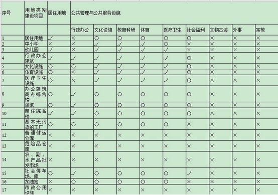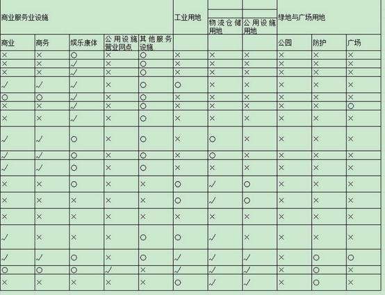 表2-1各类建设用地适建范围