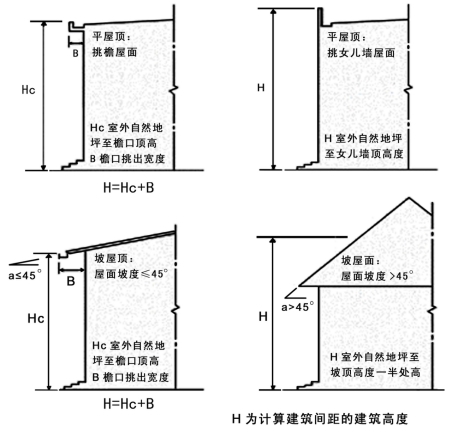 1.平屋面建筑:挑檐屋面的建筑,其建筑高度为自室外自然地坪计算至檐口顶加上檐口挑出宽度;带女儿墙屋面的建筑,其建筑高度为自室外自然地坪计算至女儿墙顶。如附图2所示。