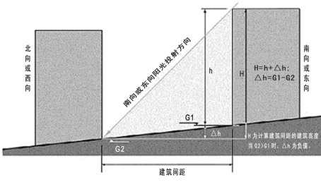 4.相临两幢建筑室外自然地坪存在高差的,应按附图3所示,确定建筑高度。