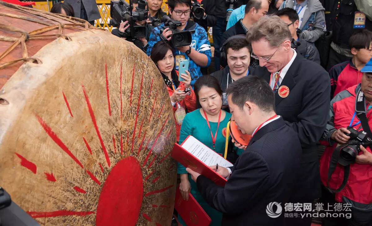 2月22日上午,2016年中国·德宏景颇族国际目瑙纵歌节开幕式上,世界纪录协会美国高级认证官麦克?温森特宣布世界最大的景颇族蒙皮木鼓、世界人数最多的景颇族绿叶宴、世界上株高最高的水稻——遮放贡米毫秕,挑战世界纪录成功。意味着德宏州的世界纪录总数达到了13项。