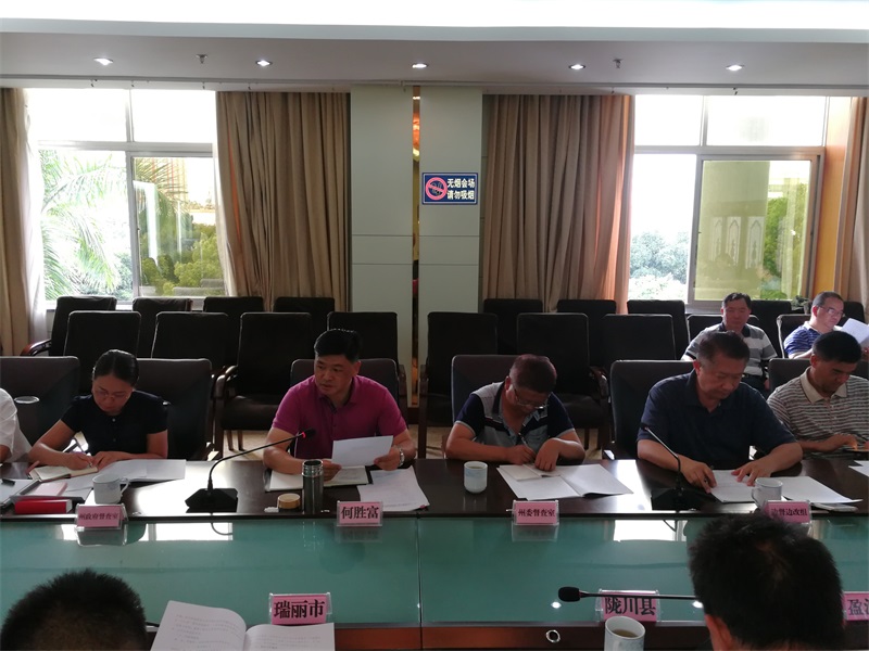 2018年6月11日下午,州人民政府在芒市会堂第六会议室召开迎接中央环保督察“回头看”工作协调会议,参加会议的有迎接“回头看”工作领导小组下设的8个工作组组长或副组长及工作组成员参加,会议由州政府何胜富副秘书长主持。
