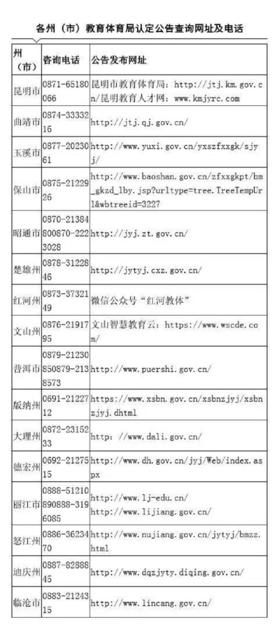 [附件: 附件1:各州(市)教育体育局认定公告查询网址及电话]