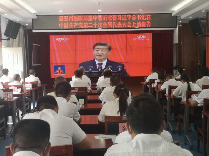 党的二十大是在全党全国各族人民迈上全面建设社会主义现代化国家新征程、向第二个百年奋斗目标进军的关键时刻召开的一次十分重要的大会。德宏州财政局党组切实提高政治站位,高度重视党的二十大收听收看工作,提前作出安排部署,党组书记、局长吴叔康同志对收听收看提出明确要求,党组班子成员以上率下,与干部职工一起集中收听收看,退休老同志和行动不便的同志自行在家实时进行收看。在单位会议室,全体干部职工怀着无比激动的心情集中收听收看大会实况直播,聚精会神听报告、全神贯注做笔记,一心一意写体会,真正将自己融入到党的二十大胜利召开的热烈浓厚氛围中。