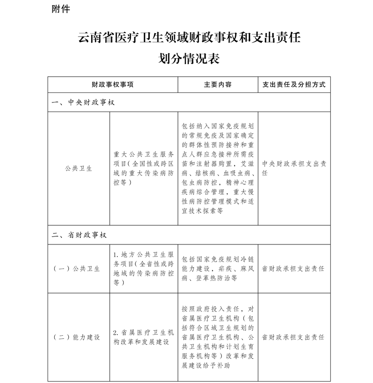 附件:云南省医疗卫生领域财政事权和支出责任划分情况表