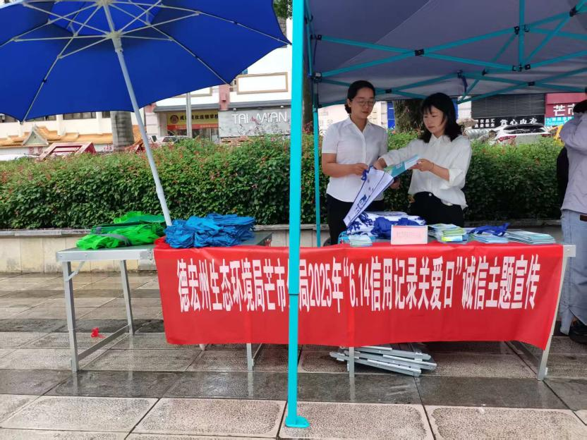 为提高企业和公众对信用记录的重视程度,增强公众诚信意识,宣传和普及信用法律法规,在全社会形成守信光荣、失信可耻的浓厚氛围,德宏州生态环境局芒市分局在2025年“6·14信用记录关爱日”前后开展了诚信主题宣传活动。