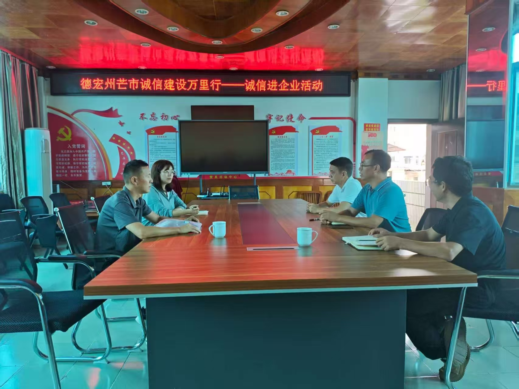 为深入推进“诚信建设万里行”专项行动,切实帮助企业化解信用风险、提升信用水平,9月12日,芒市发展和改革局组织信用建设工作人员携手芒市交通运输局信用建设工作人员赴德宏黄金口岸旅游汽车有限公司开展“诚信进企业”主题宣传暨信用修复帮扶活动,为企业送上“信用服务礼包”。