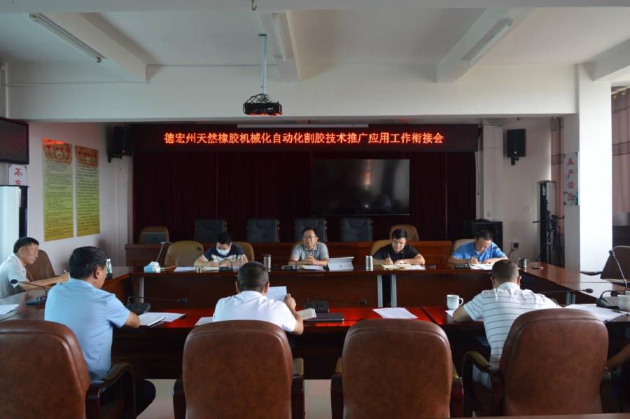 为落实推进德宏州新型割胶机械化应用和割胶生产服务模式推广工作,州橡胶产业办于7月7日召开专题会议,抓好全州天然橡胶自动化割胶技术推广应用工作衔接。