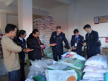2017年1月5日至1月6日,盈江县农业局农业行政综合执法大队开展“双随机、一公开”监管工作。此次专项行动,由州农业局、盈江县农业局农业执法大队随机抽取执法人员组成抽查小组,随机抽取了盈江县内7家农资经营门店,按照《盈江县县级政府部门随机抽查事项清单》的内容进行了现场检查及指导。