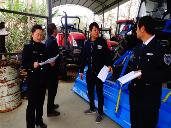 为加强瑞丽市农机产品质量监督管理工作,切实维护广大农机使用者合法权益,保障农机手操作安全。2017年1月9至13日,瑞丽市农业局、市农机安全监理站工作人员一行5人,深入全市六个乡镇对农机经营店、维修网点进行了拉网式检查行动。