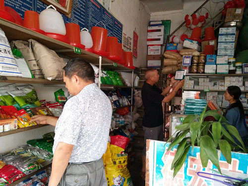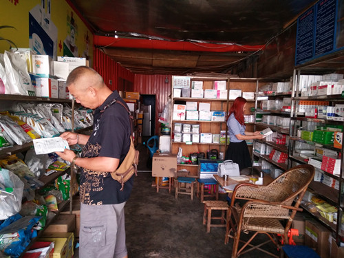 为了规范兽药市场,加强对假劣兽药经营门店的打击,维护消费者的合法权益,保障养殖投入品质量安全。2017年6月2日芒市动物卫生监督所孙定富副所长带领叶绍达、李自发一行4人,对芒市城区、遮放镇范围内的兽药经营门店组织开展第四批假兽药执法检查活动。