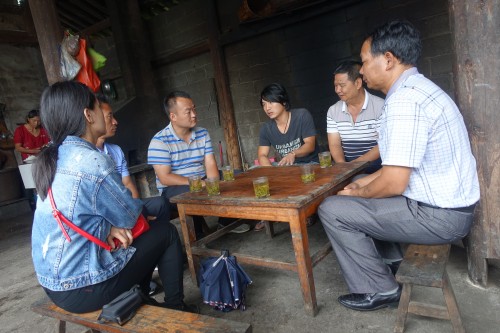图为与茶厂生产者交流