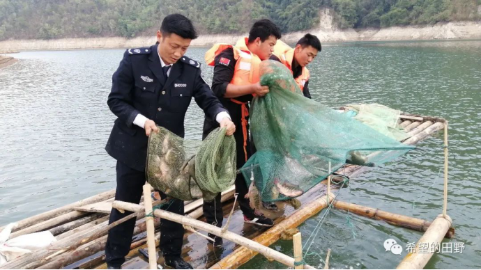 针对群众举报“有人使用大功率电捕渔具,在弄另库区江东乡高埂田林业站附近水域电鱼”线索,联合执法行动小组对涉嫌电鱼当事人进行询问,走访了周边部分群众,对举报线索进行调查核实;同时,联合执法行动小组乘船沿库区进行巡查,对库区水域内粘网、过江网进行清理、对禁渔期间进行网鱼人员进行批评教育。此次行动,共批评教育7人,清理销毁渔网19张、地笼17个、没收非法渔获物20多公斤(现场放生)、发放禁渔期保护渔业资源宣传单500余份、悬挂禁渔期宣传横幅3条。