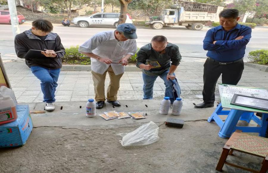 为认真贯彻全国全省农资打假专项治理行动视频会议精神和要求,保障农资市场秩序稳定,州农业农村局下发了《关于在全州范围内迅速开展农资市场监督检查加大查处力度售卖假劣农资等各种形式的违法违规问题的紧急通知》,并于3月24日至25日,由省农业农村厅农产品质量安全监管处处长杨宴模带队,省州联合组织相关专家和执法人员对芒市、陇川等县市进行农资领域专项整治检查。