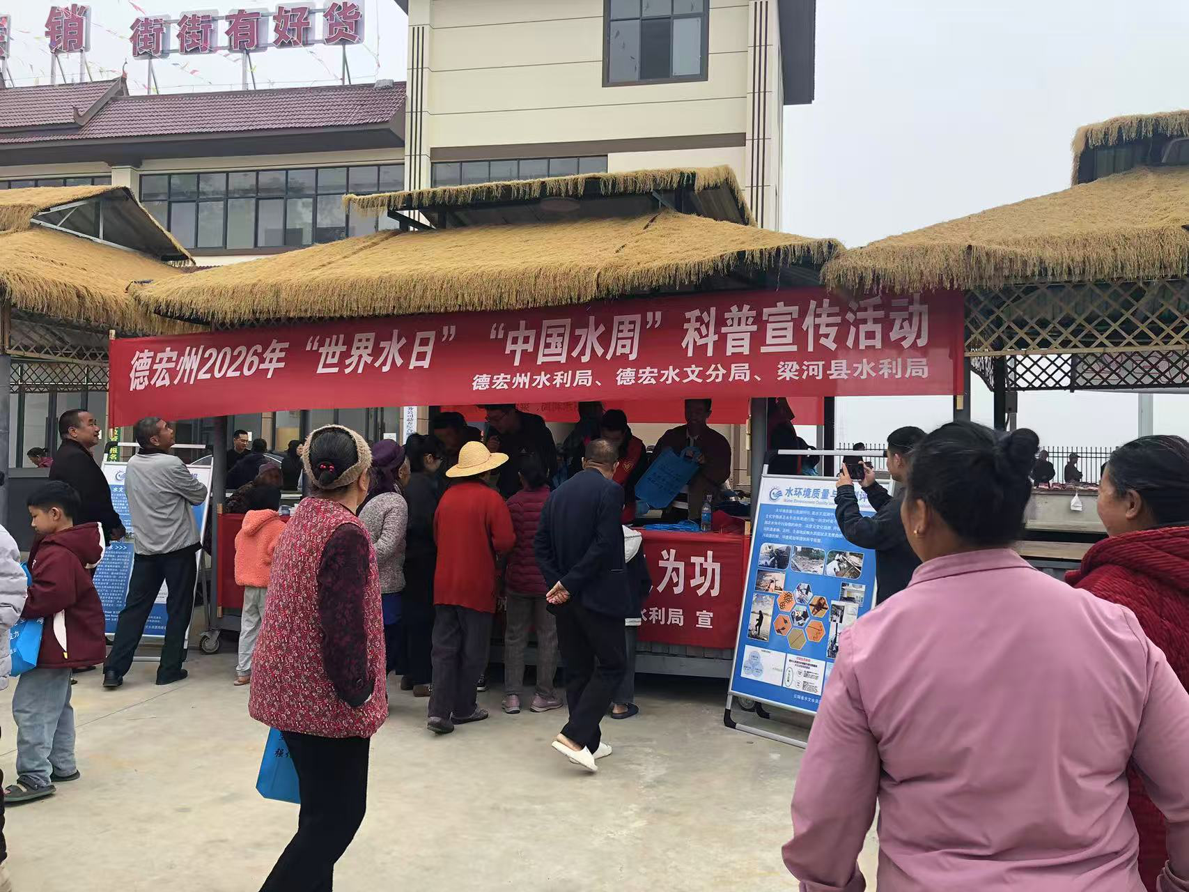 2026年3月28日,恰逢第三十四届“世界水日”、第三十九届“中国水周”,德宏州水利局联合德宏州水文分局、梁河县水利局,赴梁河县勐养镇开展“世界水日·中国水周”专项宣传活动。活动紧扣联合国“水与性别”及我国“国家水网 世纪画卷”宣传主题,通过线上线下多形式、多渠道开展宣传,切实提升群众节水护水意识,推动形成全民爱水惜水的良好风尚。