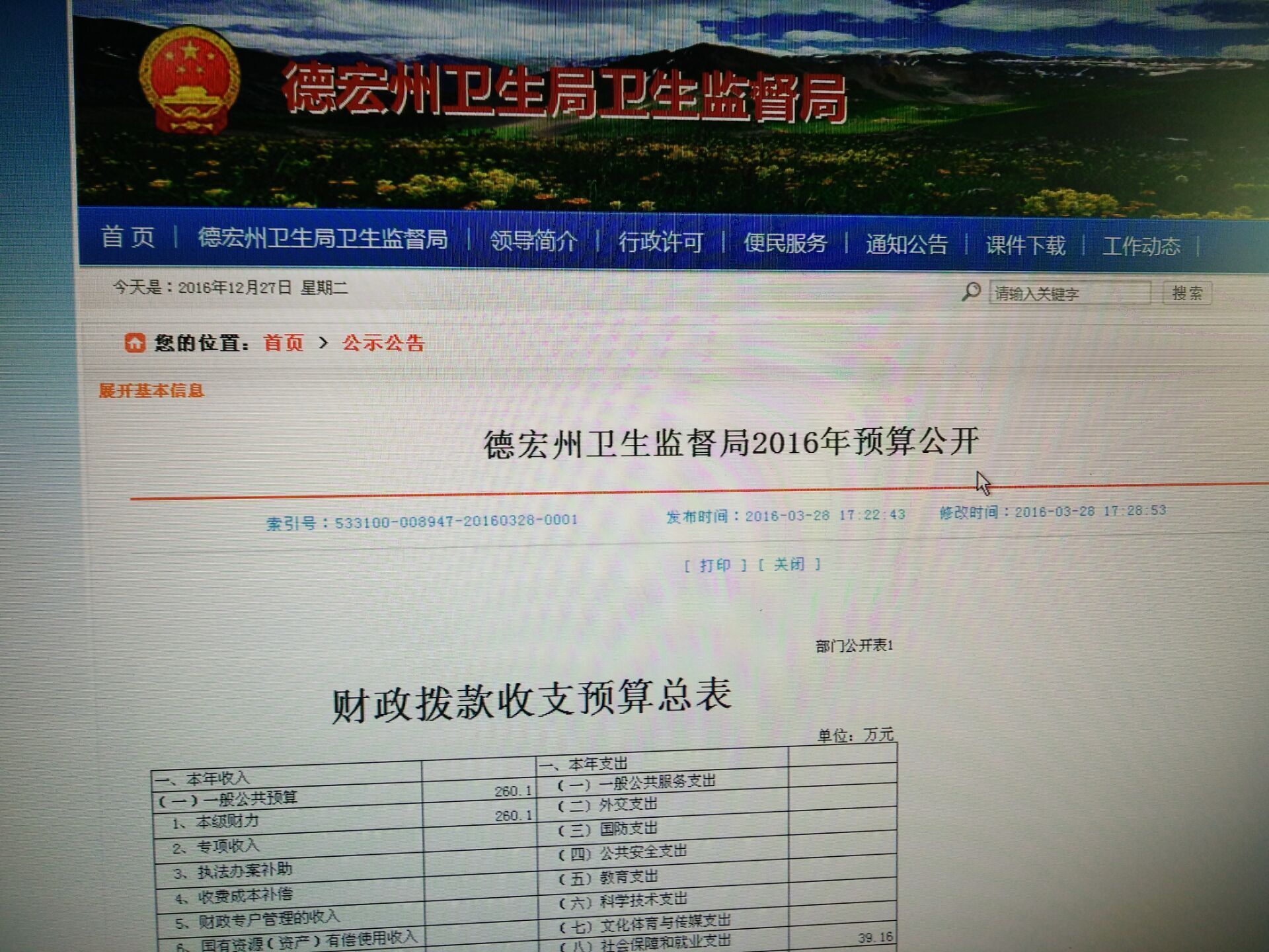 [附件: 州卫生监督局2016年预算公开情况表]