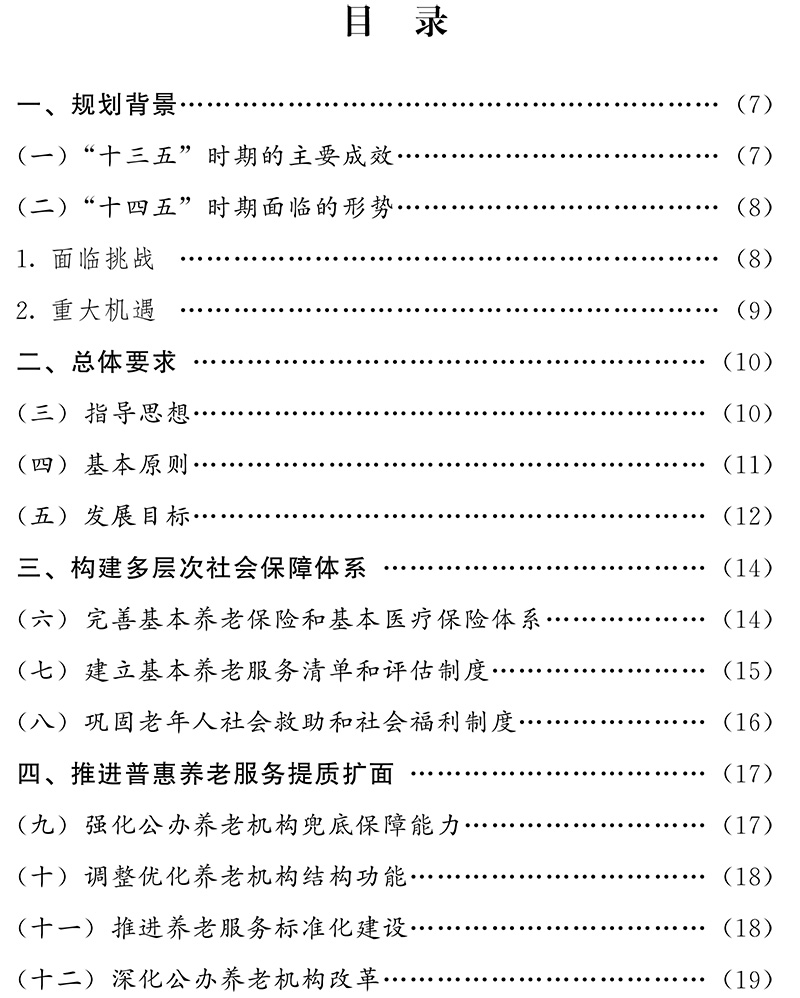 “十四五”时期,积极应对人口老龄化的制度框架基本建立,老龄事业和产业协同高质量发展,社会保障持续加强,养老服务供给有效扩大,养老产品供应日益丰富,行业要素支撑不断增强,居家社区机构相协调、医养康养相结合的养老服务体系基本建成,老年人获得感、幸福感、安全感显著提升。